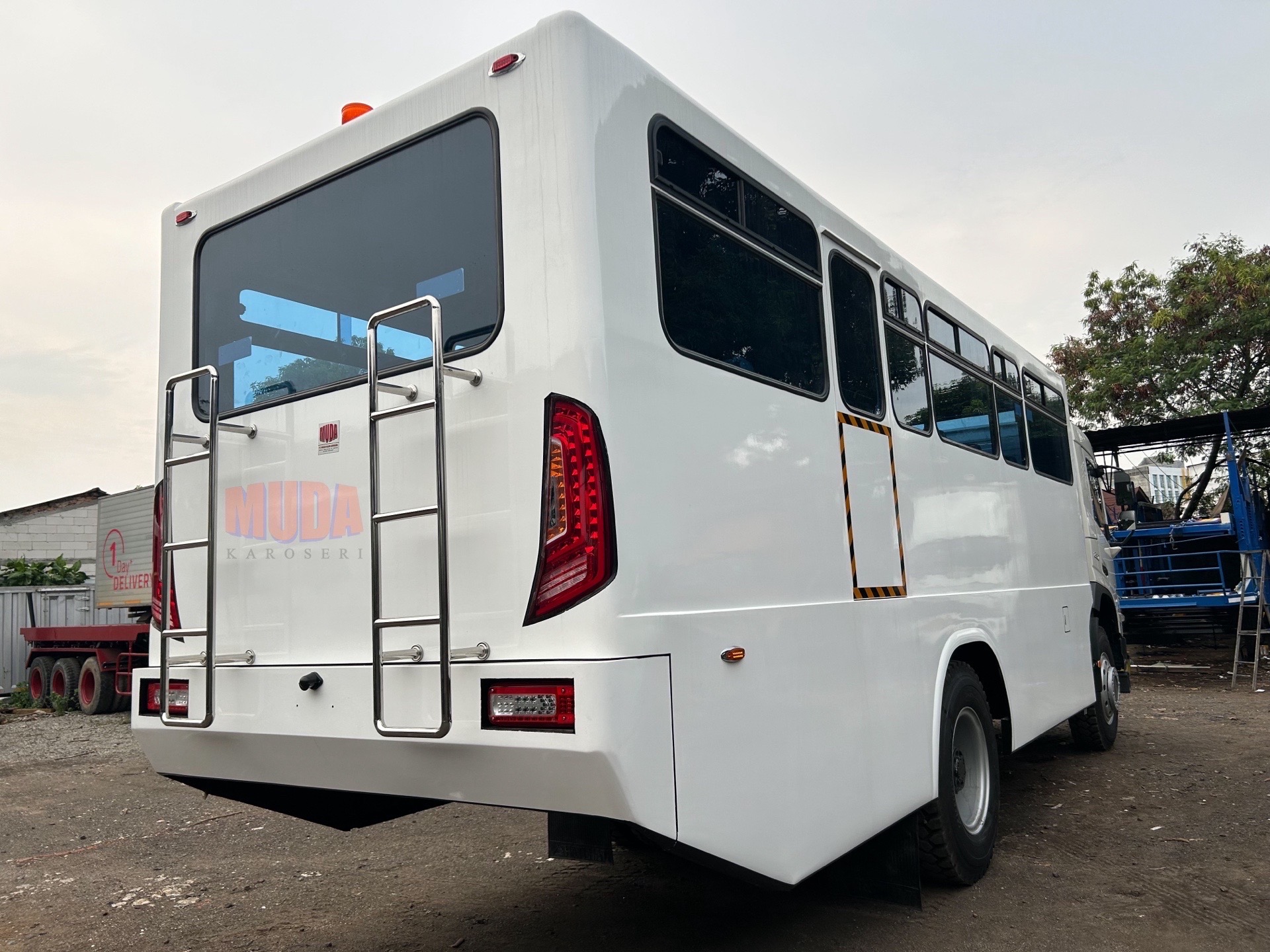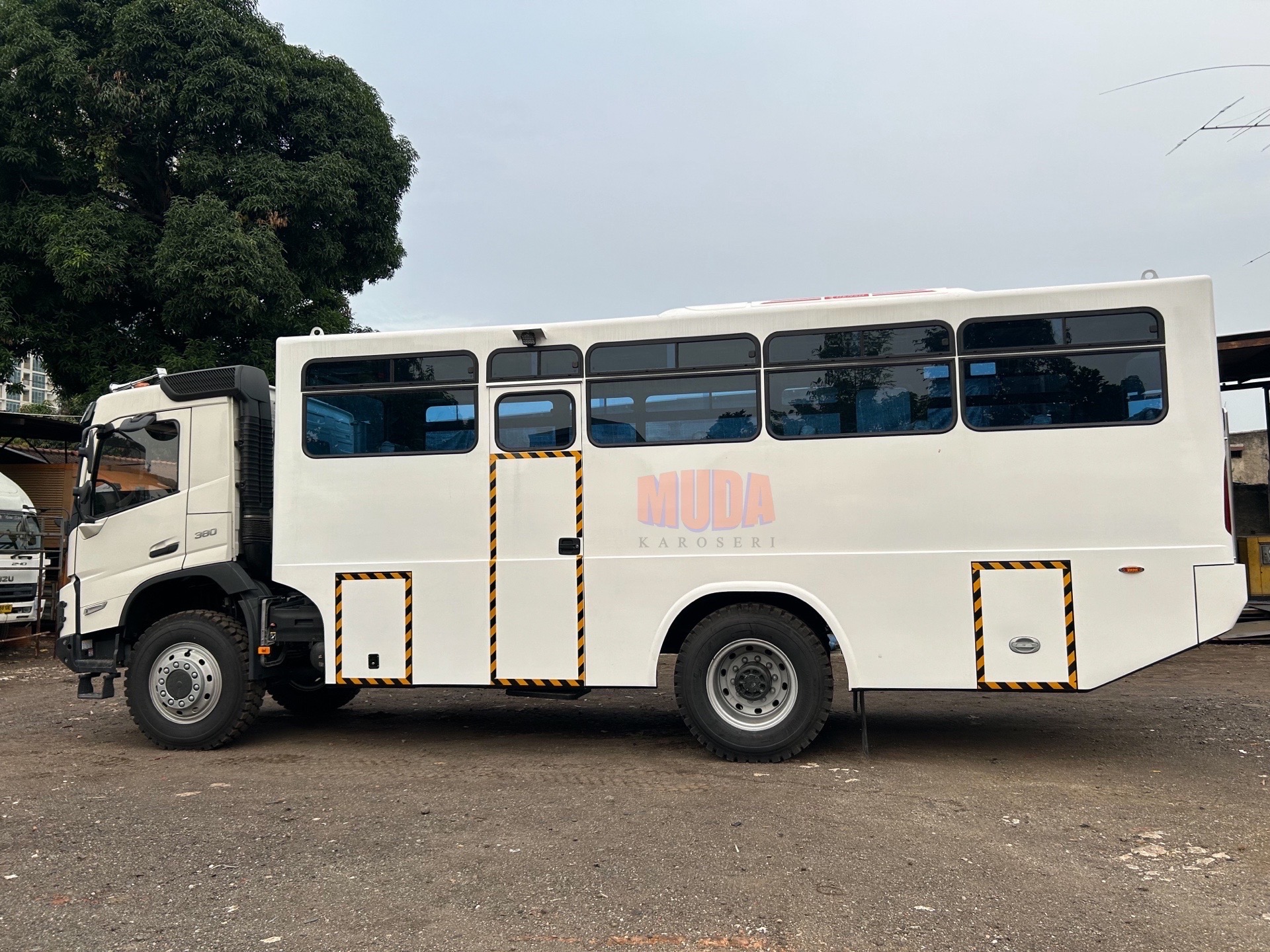 Personnel transport vehicle with capacity 38 penumpang, Specifically designed for mining and rugged terrain. Equipped with individual seats, seat belts, ventilation, and mining-standard safety systems for maximum comfort and safety.