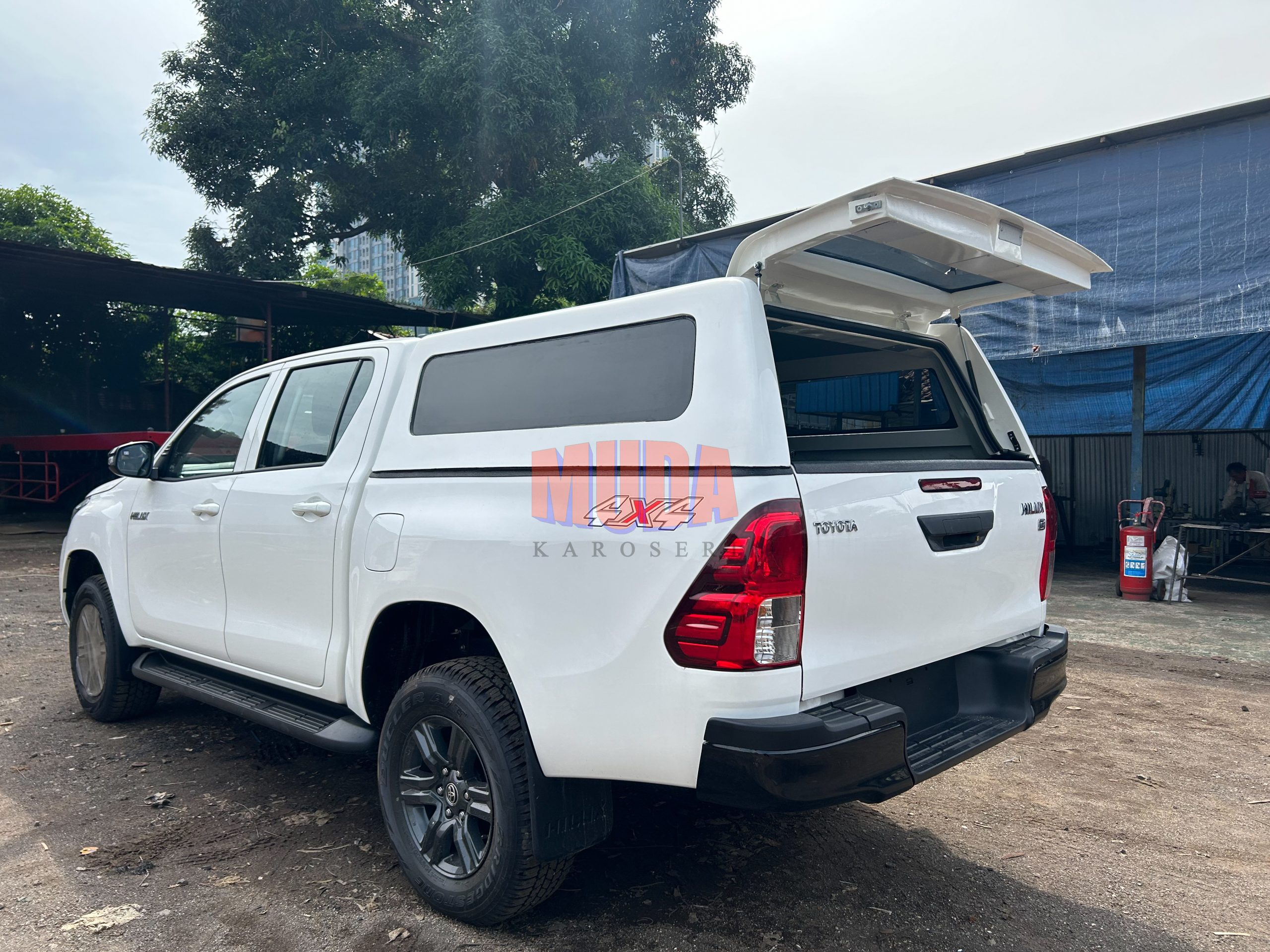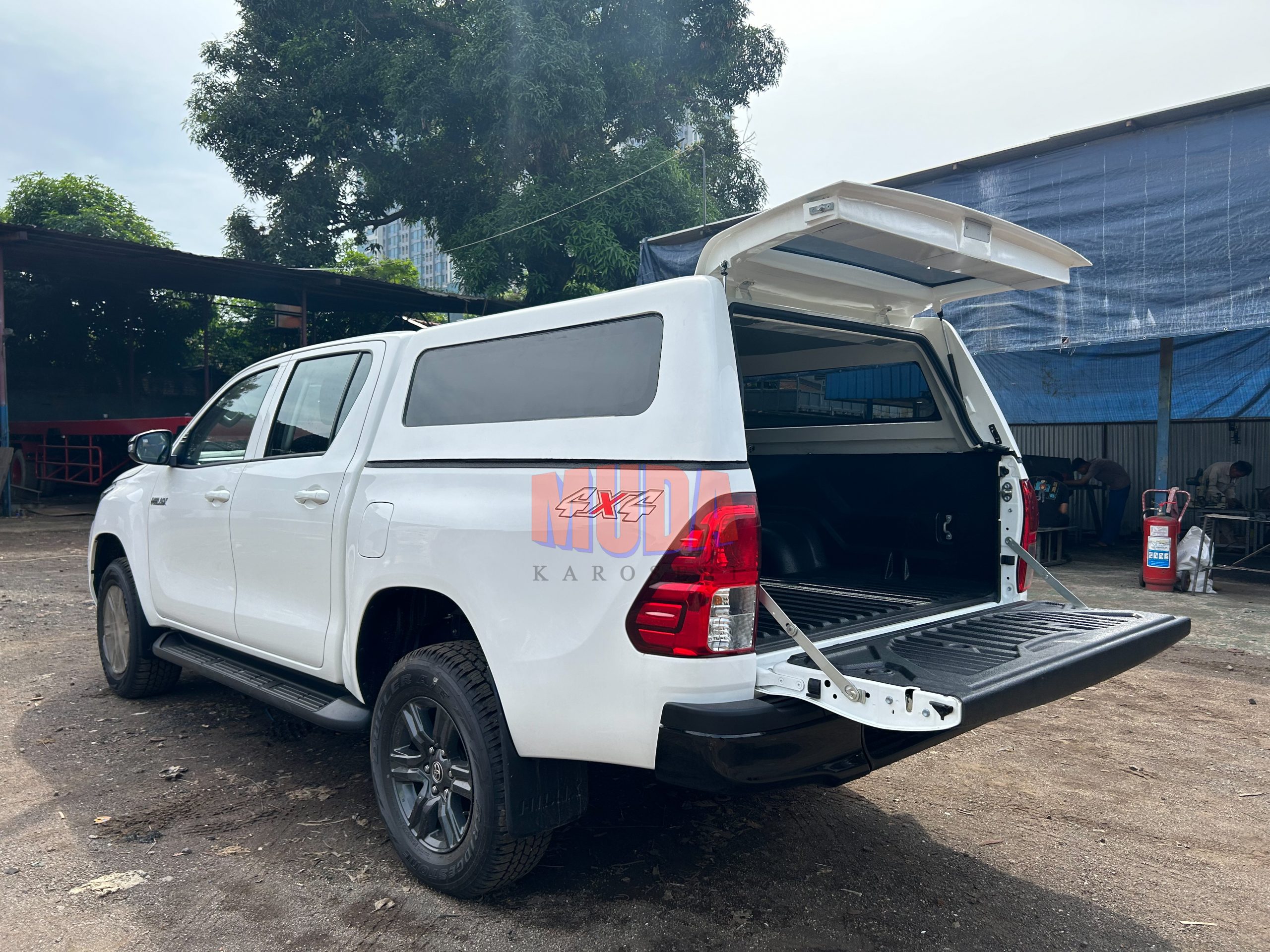 Penutup belakang untuk kendaraan double cabin dengan desain kokoh dan aerodinamis. Terbuat dari material ringan dan tahan cuaca, dilengkapi kaca dan kunci. Cocok untuk keperluan operasional, touring, maupun angkut barang ringan.