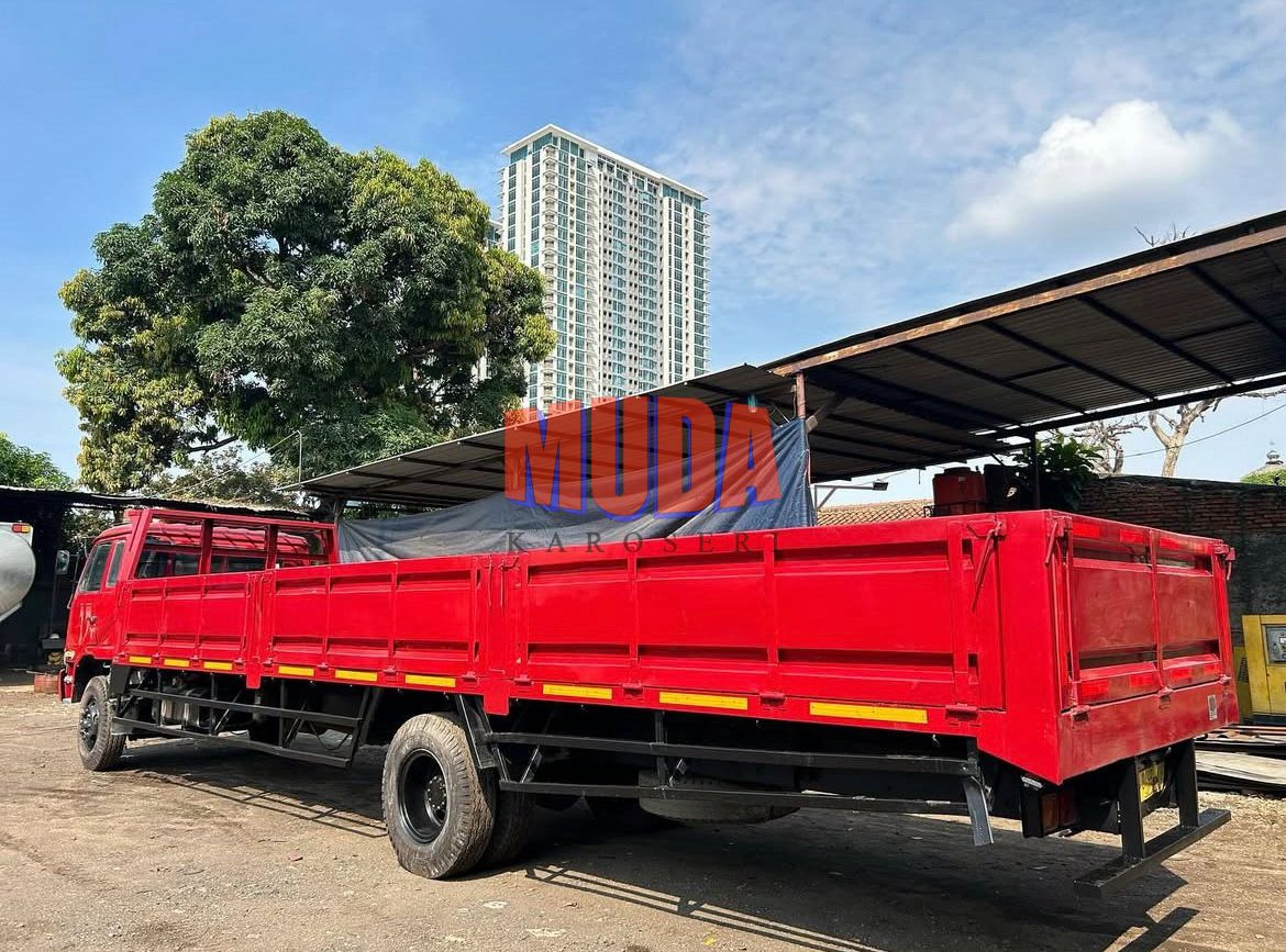 Karoseri bak terbuka dengan tujuh titik bukaan pada sisi samping dan belakang, memudahkan proses bongkar muat dari berbagai arah. Cocok untuk distribusi barang umum dengan akses cepat dan fleksibel di berbagai kondisi lapangan.