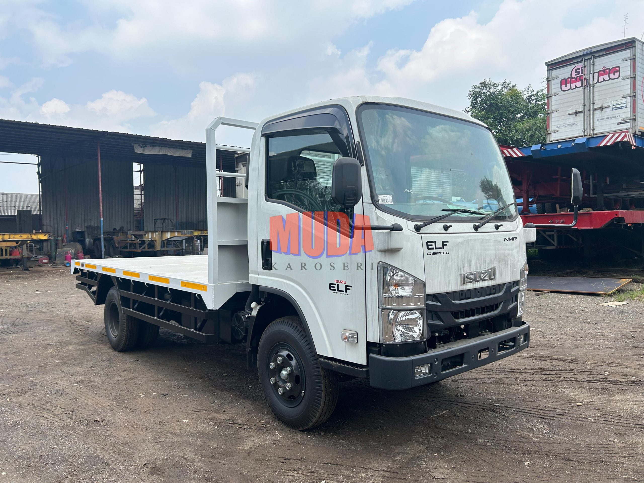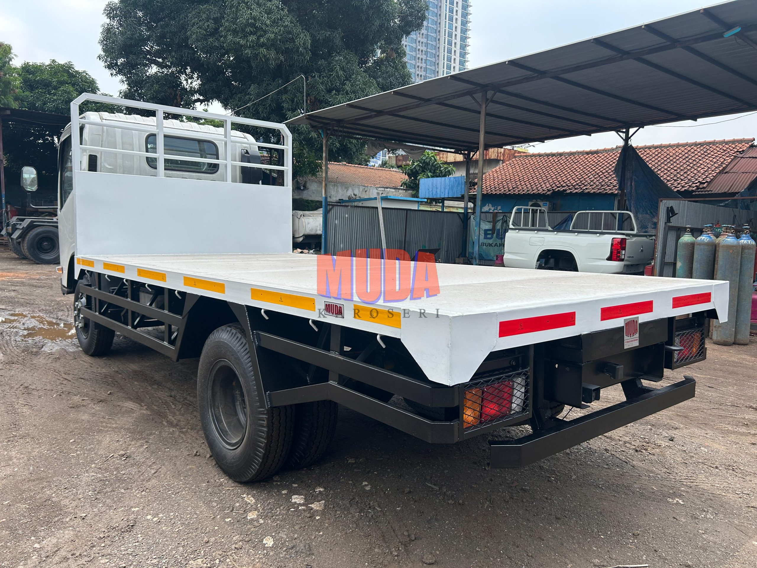 kendaraan truk dengan bak datar tanpa dinding samping, dirancang untuk memudahkan pengangkutan dan bongkar muat material berat atau berukuran besar seperti besi, pipa, bahan bangunan, dan lain-lain . Desain terbuka ini memungkinkan akses dari berbagai sisi, sehingga efisien untuk penggunaan di sektor konstruksi dan logistik.